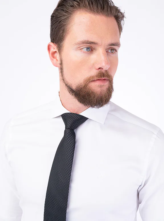 Bílá košile ze směsové bavlny od rakouského výrobce materiálů Getzner. Košile je ušitá ve volném střihu pro větší pohodlí. Doporučujeme pro formální příležitosti.