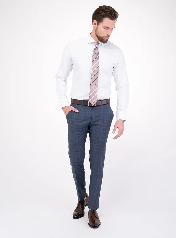 Bílo modrá košile z čisté bavlny od italského výrobce materiálů Albini. Košile je ušitá v přiléhavém střihu, který kopíruje postavu. Doporučujeme pro formální příležitosti.