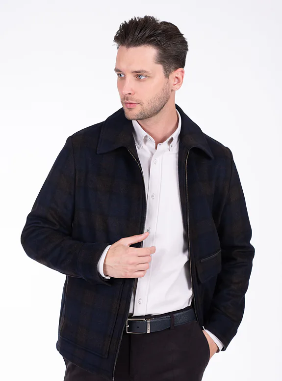 Károvaná vlněná bunda