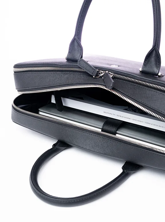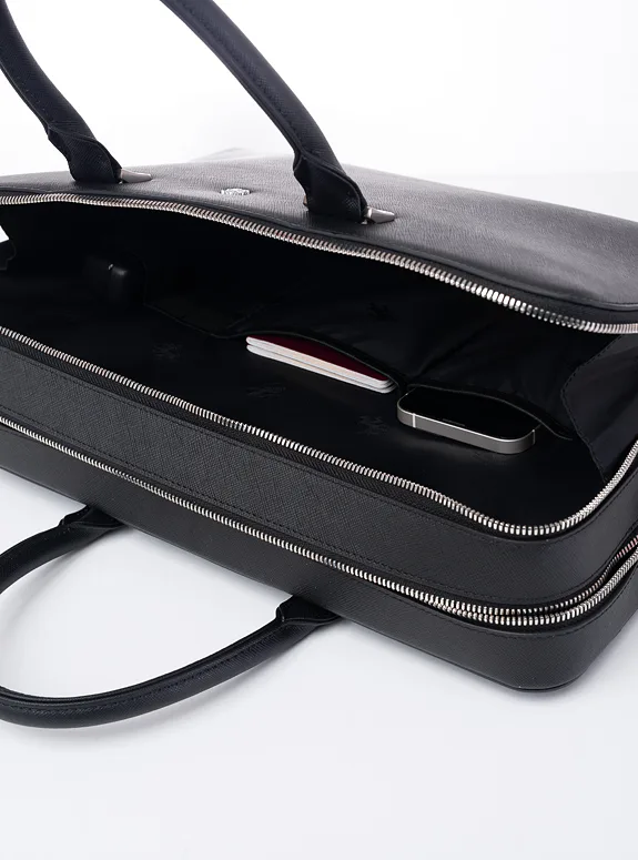 Podtrhněte svůj elegantní styl s touto černou taškou z přírodní kůže, která kombinuje praktičnost s luxusem, ať už jde o formální setkání nebo profesionální události.