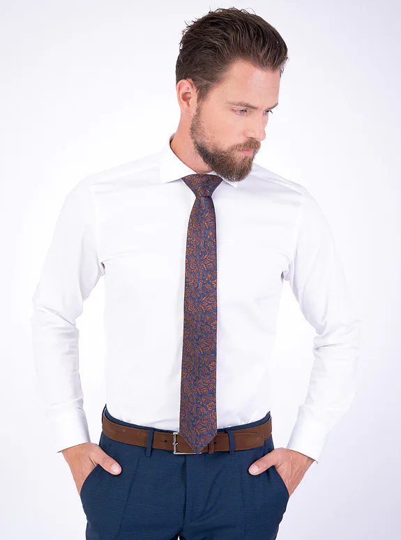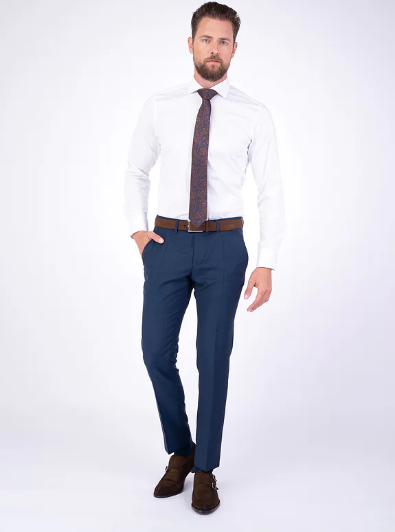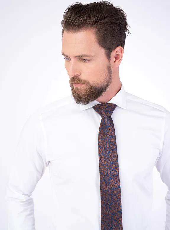 Bílá košile ze směsové bavlny s příměsí elastanu od italského výrobce materiálů Albini. Košile je ušitá v přiléhavém střihu, který kopíruje postavu. Doporučujeme pro formální příležitosti.