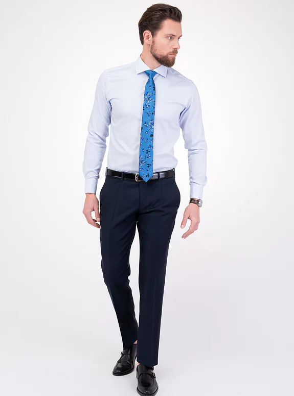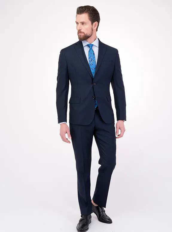 Modrý oblek z vlny Super 130'S s příměsí elastanu od italského výrobce materiálů Reda Flexo. Oblek je ušitý ve volném střihu pro větší pohodlí. Doporučujeme pro formální příležitosti.