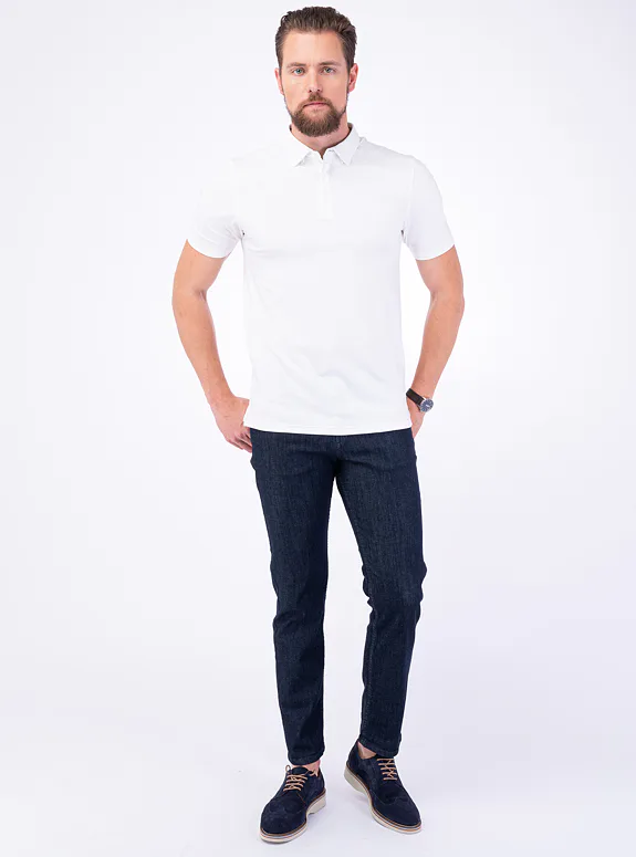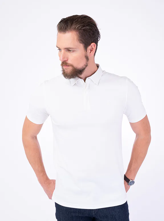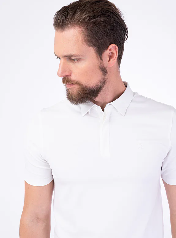Bílé triko z bavlny s příměsí elastanu od italského výrobce materiálů New Marbas. Triko je ušité ve standardním střihu pro větší pohodlí.